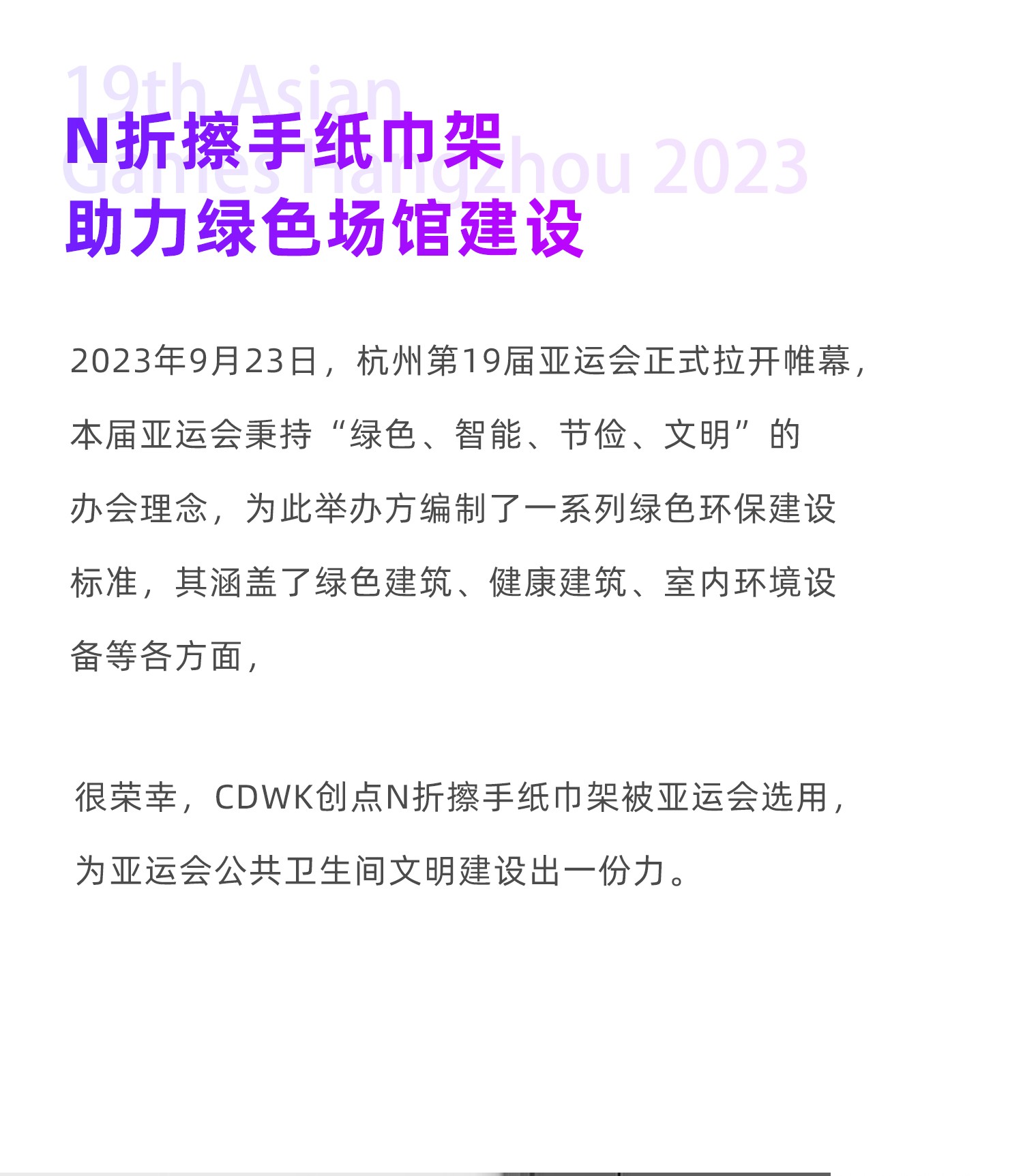 綠色亞運 | CDWK創(chuàng)點亞運會選用紙巾架,助力綠色場館建設(shè)!